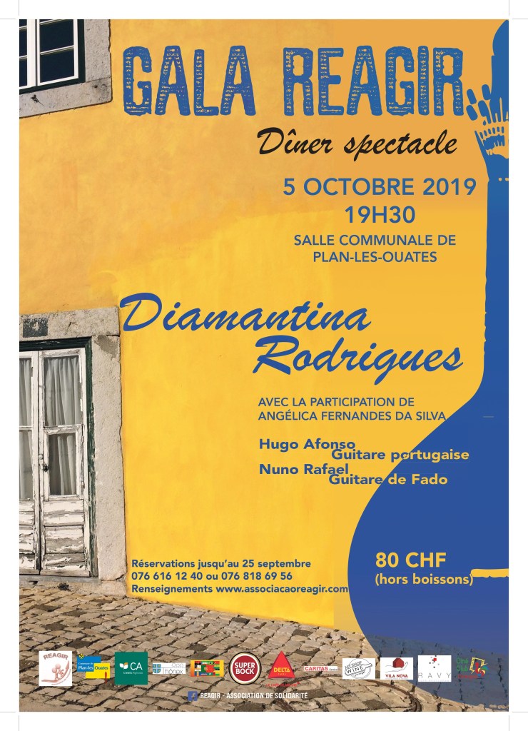 Como o tempo passa! É já no dia 22 de Setembro, pelas 19 horas, que vos esperamos por vós na « Salle Communale de Plan-les-Ouates », para juntos vivermos a terceira Gala REAGIR . Estamos seguros que será, a exemplo das duas precedentes, uma noite de alegria e solidariedade.